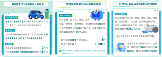 ►消费补贴升级!9月3日盘中,《上海市关于进一步加大力度推进消费品以旧换新工作实施方案》发布。从该方案可以看出,个人消费者乘用车置换更新和家电产品以旧换新等方面得到重点支持。具体来看,购买符合条件的新能源乘用车补贴标准提高至2万元,购买2.0升及以下排量燃油乘用车补贴1.5万元;对个人消费者购买符合要求的沙发、床垫、橱柜等家电、家装、家居产品按销售价格的15%予以补贴。业内人士指出,加快消费品以旧换新,有助于拉动投资和扩大内需,也有助于提高国民经济循环质量以及居民生活水平;同时,以旧换新相关举措将驱动家电、汽车等行业向绿色智能趋势深化,推动产业高端化、智能化、绿色化发展。