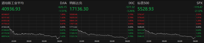 ►美股方面,周二大幅收跌,三大指数均创8月6日以来最大单日跌幅。美国8月制造业活动连续第五个月萎缩,加重了投资者对美国经济衰退的担忧。本周市场关注8月非农就业数据,以研判美国经济状况与美联储的降息路径。大型科技股普跌,费城半导体指数大跌近8%,英伟达跌9.53%。经计算,英伟达的总市值单日“蒸发”了2,789亿美元(约合1.99万亿元人民币),创下美股的新纪录。截至收盘,纳斯达克指数跌3.26%,标普500指数跌2.12%,道琼斯指数跌1.51%。热门中概股多数下跌,纳斯达克中国金龙指数跌0.86%。