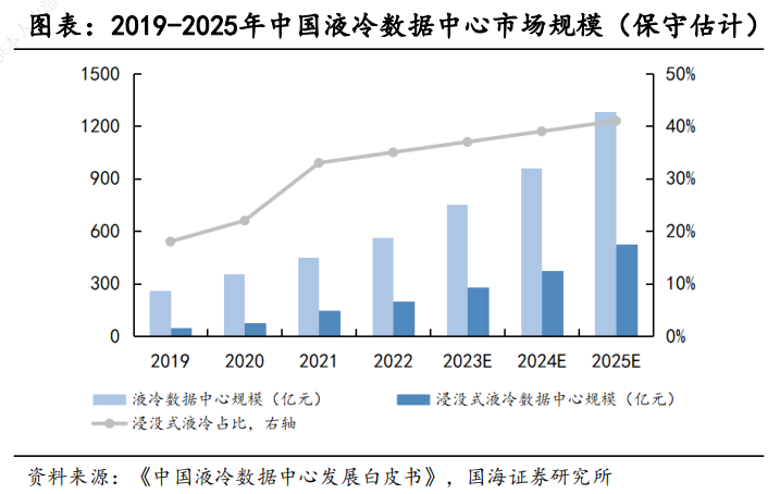 市场空间方面,根据《中国液冷数据中心发展白皮书》,保守估计2025年中国液冷数据中心市场规模将达1283.2亿元,其中浸没式液冷占526.1亿元,占比将超过40%。氟化液是浸没式液冷的理想冷却液,目前我国仍处于发展初期阶段。在浸没式液冷数据中心的加速扩张同步带动冷却液需求的背景下,电子氟化液未来大有可为。