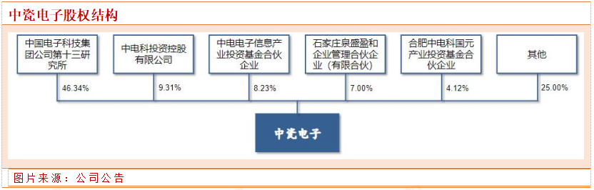公司控股股东为中国电子科技集团公司第十三研究所,持有公司股份46.34%。公司实际控制人为中国电子科技集团,其通过中国电科十三所、电科投资和中电国元间接控制公司59.77%的股份,股权结构稳定。