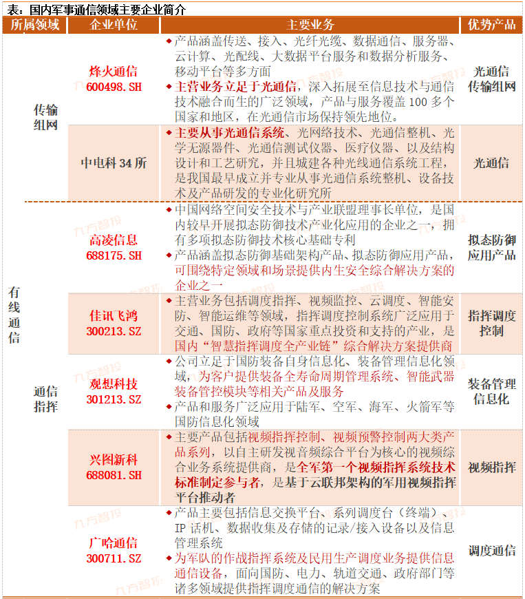 同时,结合2027年建军百年奋斗目标,在我军已经基本事件机械化的当下,全军机械化信息化智能化融合发展的节奏大概率将加速提前。因此,适应未来新型作战样式的先进军事通信体系也将成为我军信息化能力提升的基础投资重点。
