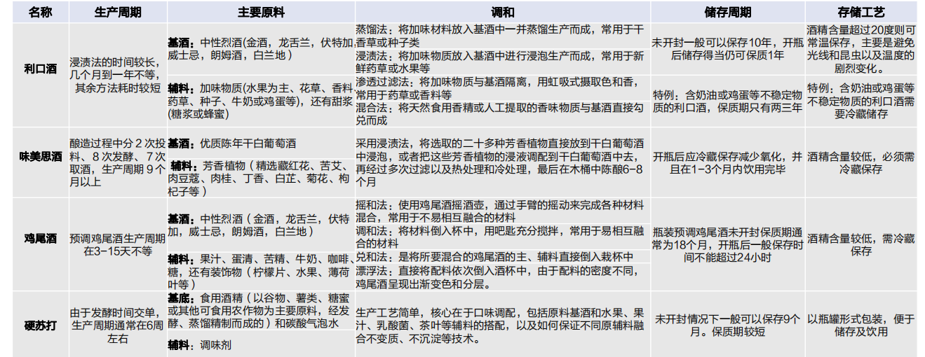 调制酒作为一种新兴的酒类饮料,由基酒和辅料配制而成,基酒主要有蒸馏酒(伏特加、朗姆酒、白酒等)和发酵酒(部分葡萄酒、啤酒等),配料包括果汁、蛋清、调香动植物、药用动植物、芳香植物等。