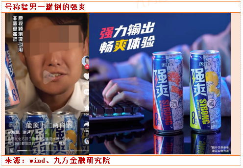 最近在抖音刷到一条有趣的视频,视频中的几位青年在比较谁的酒量更大,谁知道居然喝了两罐几乎都醉倒了,视频中的产品是号称“猛男一罐倒,小绵羊看到赶紧跑”的强爽鸡尾酒。平时我也是休闲时喝一点小甜酒,于是就下单购买了几罐,这个酒仅8度,看着更像是饮料很难相信一罐就醉,抱着试试看的心态没想到一罐真的就晕乎乎了。这款产品属于上市公司百润股份,目前在抖音和电商平台基本都卖断货了,销量旺盛。