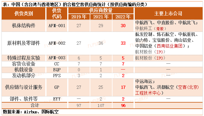面对上述大飞机产业特征,中国航空装备制造企业大有可为。立足眼下,国内相关龙头企业将直接受益于本次空客的“世纪订单”。根据空客2022年7月1日最新发布的合格供应商名单,入围的中国企业(含台湾与香港地区)共计73家,其中包括4家台企与1家香港公司。
