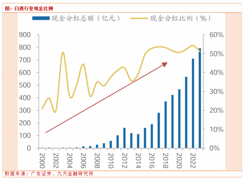 从中期投资角度看,白酒行业现金流充足,未来分红率有望进一步提升。