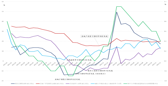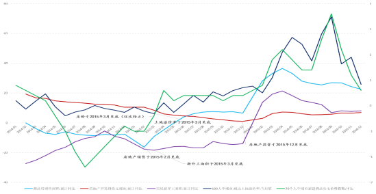 复盘历史,房地产销售企稳是房地产周期启动的标志,房价的拐点与房地产销售企稳点大致同步,新开工的拐点滞后销售约3个月,投资的拐点滞后销售约9个月。