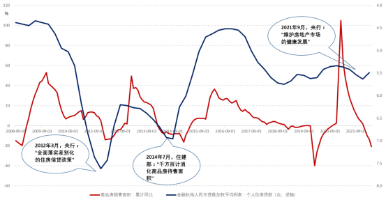本文梳理我们做出这个预判的理由以及对于未来进一步的预测。我们团队认为房地产销售必然能够企稳的原因是房贷利率下行以及地方房地产销售刺激政策。
