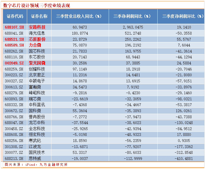数字芯片设计领域好坏参半,安路科技、芯原股份、力合微、紫光国微营收/净利润同比增速以及净利润环比保持增增长。