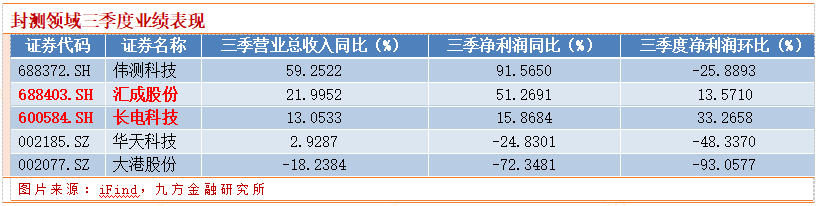 封测领域已公布三季报的公司中,汇成股份、长电科技三项指标保持增长。