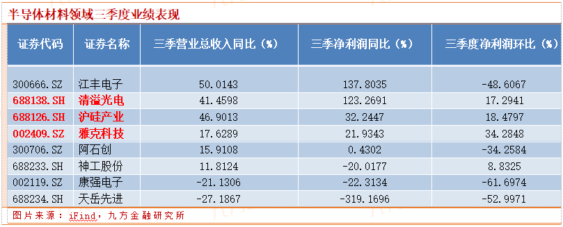 半导体行业三季报点评:材料领域改善明显