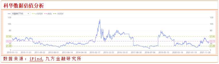 根据iFinD数据,当前科华数据静态PE为35.2倍左右,动态PE(按2022年盈利预期)为26.1倍左右,科华数据历史估值中枢为39.7倍左右,历史估值底部区间为20倍左右,目前公司的动态PE无论是相对于历史估值中枢还是历史底部区间,都有一定安全边际。