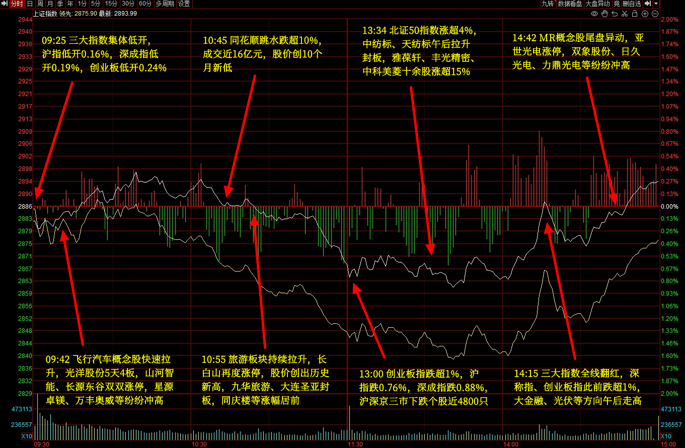 今日市场呈现“V”型反弹态势,盘中沪指与创业板指均一度创下调整新低,而在尾盘阶段迎来了资金的回流拉升,最终三大指数集体收红。