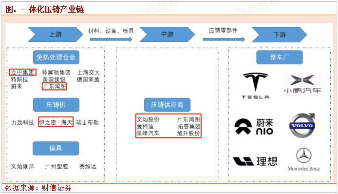 产业链相关公司:伊之密、文灿股份、广东鸿图、旭升股份、立中集团、力劲科技。