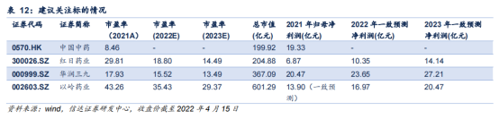 A股上市公司中,红日药业业务横跨成品药、中药配方颗粒。作为最早的国家试点企业之一,公司持续夯实产业链布局,在品种、渠道、质量等方面具备先发优势。另外,华润三九品牌渠道优势显著,配方颗粒智能制造水平较高。随着公司未来品牌集中度进一步提升以及线上渠道拓展,配方颗粒业务有望成为新的业绩增长点。