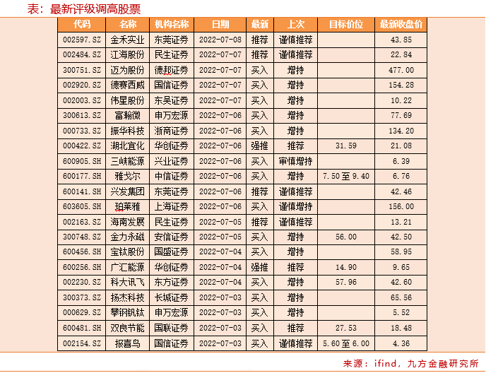 注:信息来源为ifind数据库(截止2022年7月8星期五15:30)
