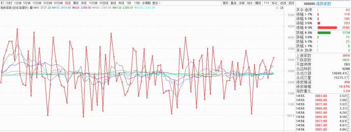 指数方面,沪指来看,虽然反弹节奏慢于预期,但强势补量后,上方依旧以60日均线作为反弹极限,简单点说,就是这个位置之后,除非市场持续保持放量状态,否则的话,大概率还是难言突破之势。