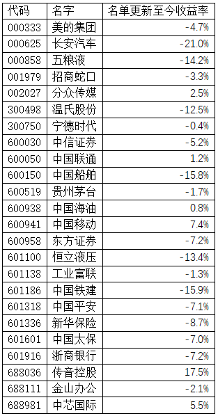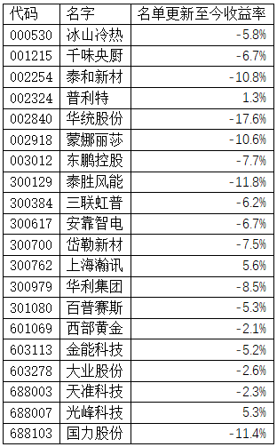 本策略中的股票名单月度更新。