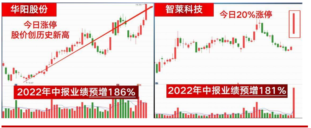 华阳股份:2022年中报业绩预增186%,今日涨停,股价创历史新高;智莱科技:2022年中报业绩预增181%,今日20%涨停。