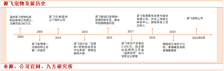 公司成立于2004年,总部位于浙江平阳县,主要从事狗咬胶、宠物带及宠物配件的研发、设计、生产、及销售;2014年,在美国创立子公司,巩固并开拓美国市场;2018年,公司完成股份制改革;2019年,公司开始在海外设厂扩充产能,成立柬埔寨爱淘、柬埔寨莱德两家子公司;