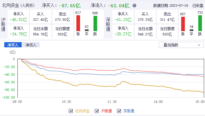 盘面上,一体化压铸、汽车整车、Chiplet、零售等板块涨幅居前,网络安全、数据要素、传媒、虚拟电厂等板块跌幅居前。同时,沪深两市总成交额7771亿,较上个交易日缩量255亿。而北上资金,则在今日净卖出87.65亿,呈现出大幅流出态势。