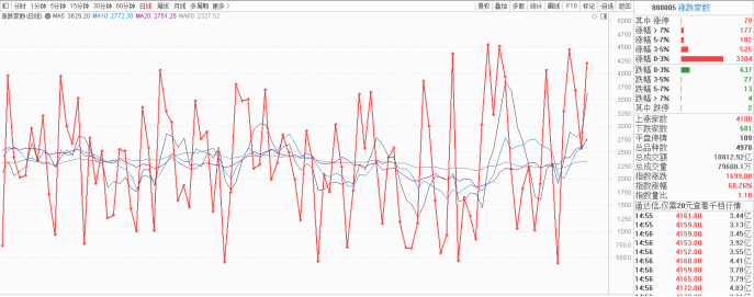 主题热点方面,今天是普涨行情,几乎所有板块都是上涨的,尤其是权重之类,像茅指数都涨得挺不错的。反而是题材,并没有像指数一样高胀,整体涨幅并不大。