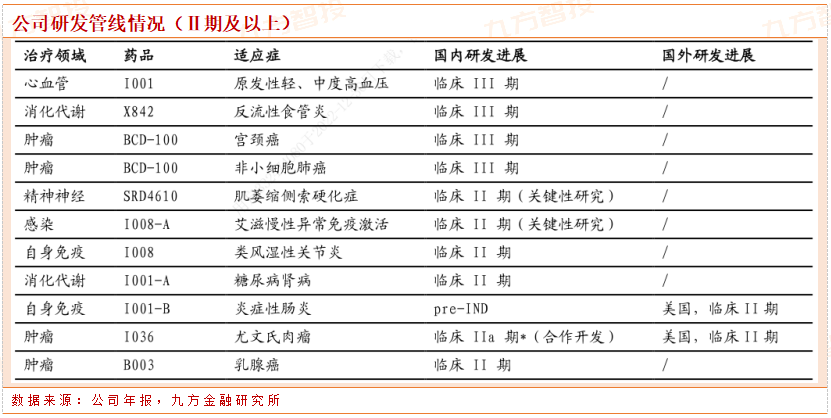 截至2021年,公司已有安柯瑞(重组人5型腺病毒)、凯力康(尤瑞克林)、培菲康(双歧杆菌三联活菌)3款1类新药上市,临床申请获得受理及进入临床研究阶段的新药管线已有47项,其中创新药39项,改良型新药8项。在创新药管线中,已有6项处于关键性研究或临床III期阶段。