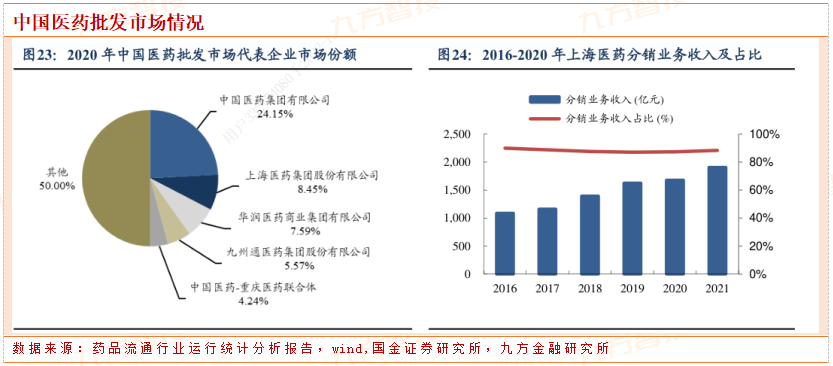 上海医药是国内第二大全国性医药流通企业和最大的进口药品服务平台。截至2021年12月,公司分销网络覆盖全国31个省、直辖市及自治区,其中通过控股子公司直接覆盖全国24个省、直辖市及自治区,覆盖各类医疗机构超过3.2万家,零售网络分布在全国16个省区市,零售药房总数超过2,000家。