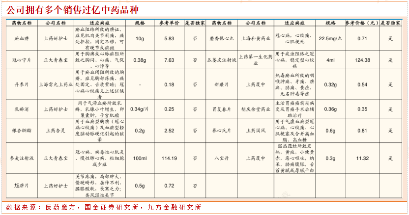特色中药新开发,携手“云南白药”发展中药大健康业务依托上海医药中药研究所,打造中药大品种。公司目前旗下拥有7家中药重点企业、9个广受认可的核心品牌以及八宝丹、六神丸等多项保密配方和胃复春等独家品种,14个产品销售过亿;2021年中药销售规模超74.6亿元,约占比工业收入的30%。