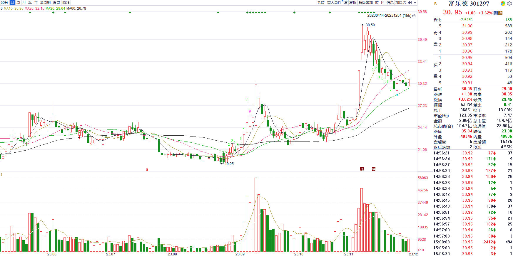 技术分析来看,这股近期放量上涨、缩量下跌,量价关系较为健康,同时底部补量特征也较为明显,预计股价有望进一步上行,建议可以逢低沿着20、30日均线跟踪关注,以短线思维对待即可。