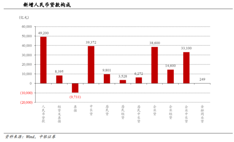 居民贷中长贷修复,企业贷结构改善。1月新增贷款4.92万亿元,同比多增200亿元,高于市场预期。其中居民贷新增9801亿元,同比多增7229亿元,企业贷新增38600亿元,同比少增8200亿元。