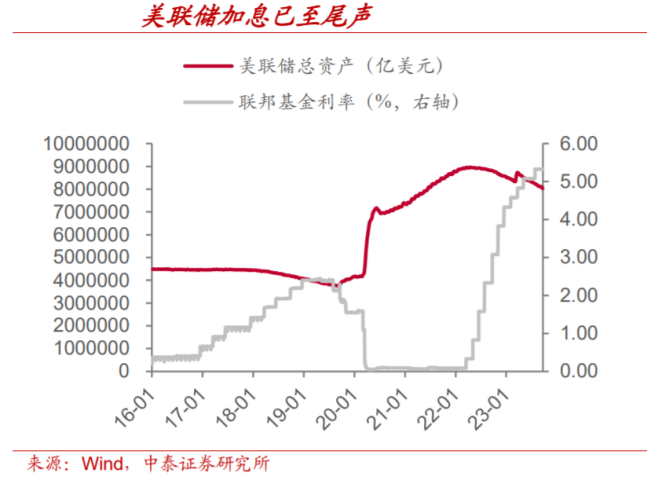 海外正处于流动性收缩周期的尾声,伴随着高利率及流动性的退潮,终端的投资需求也将受到一定影响。美国通胀韧性仍存,美联储加息已至尾声。