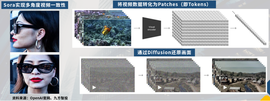 2024年2月15日,OpenAI发布首个文生视频模型Sora;可快速生成60秒、准确反映用户提示的视频;视频长度、多角度视频一致性、物理世界理解等领域具有优势;具有多角色、特定运动类型及主体和背景准确细节的复杂场景。