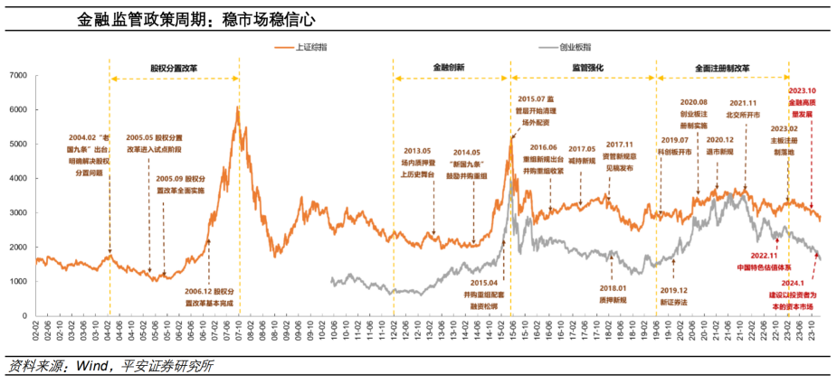 政策基调:以投资者为本,稳市场稳信心。2024年1月24日,证监会发布证监会副主席王建军接受媒体采访,提出“建设以投资者为本的资本市场”,给出框架性的指引及目标。1月29日何立峰在部署走访上市公司工作、推动上市公司高质量发展全国视频会议上强调,以推动上市公司高质量发展助力信心提振、资本市场稳定和经济高质量发展。2月7日吴清新任证监会主席。春节前夕,政策框架部署已在逐步落实,政策脉络逐渐清晰,监管执法再强化。一是稳定市场信心;二是推动上市公司提升投资价值;三是加大市场风险防控;四是完善注册制制度中长期建设。