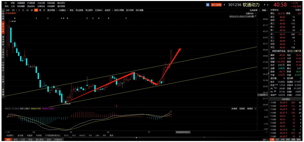 技术面上,短期均线金叉中期均线,K 线形成 5 连阳加速上升,MACD 金叉!