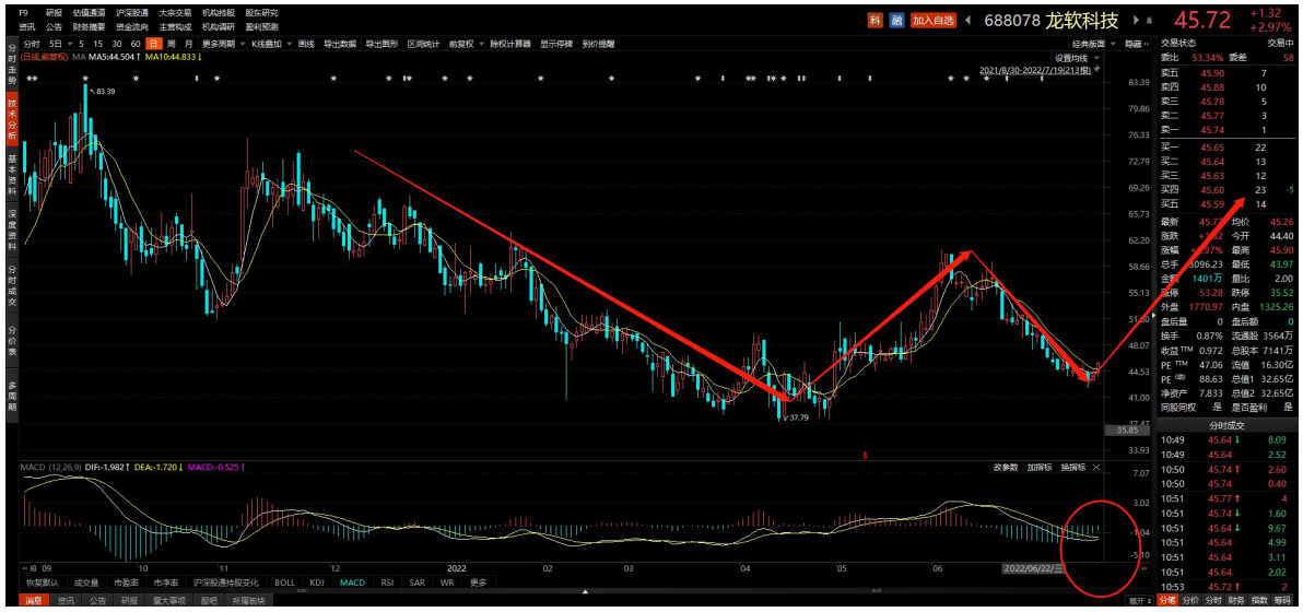 技术面上,5 日均线即将金叉,K 线形成双底形态,MACD 金叉!