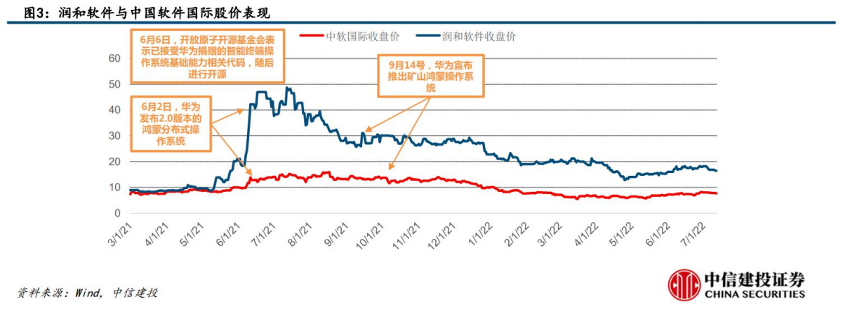 润和软件从2021年3月1日收盘价8.9元到2021年7月15日收盘价48.2,涨幅超400%。中软国际从2021年3月1日收盘价7.3元到2021年8月14日收盘价15.7,涨幅超110%。