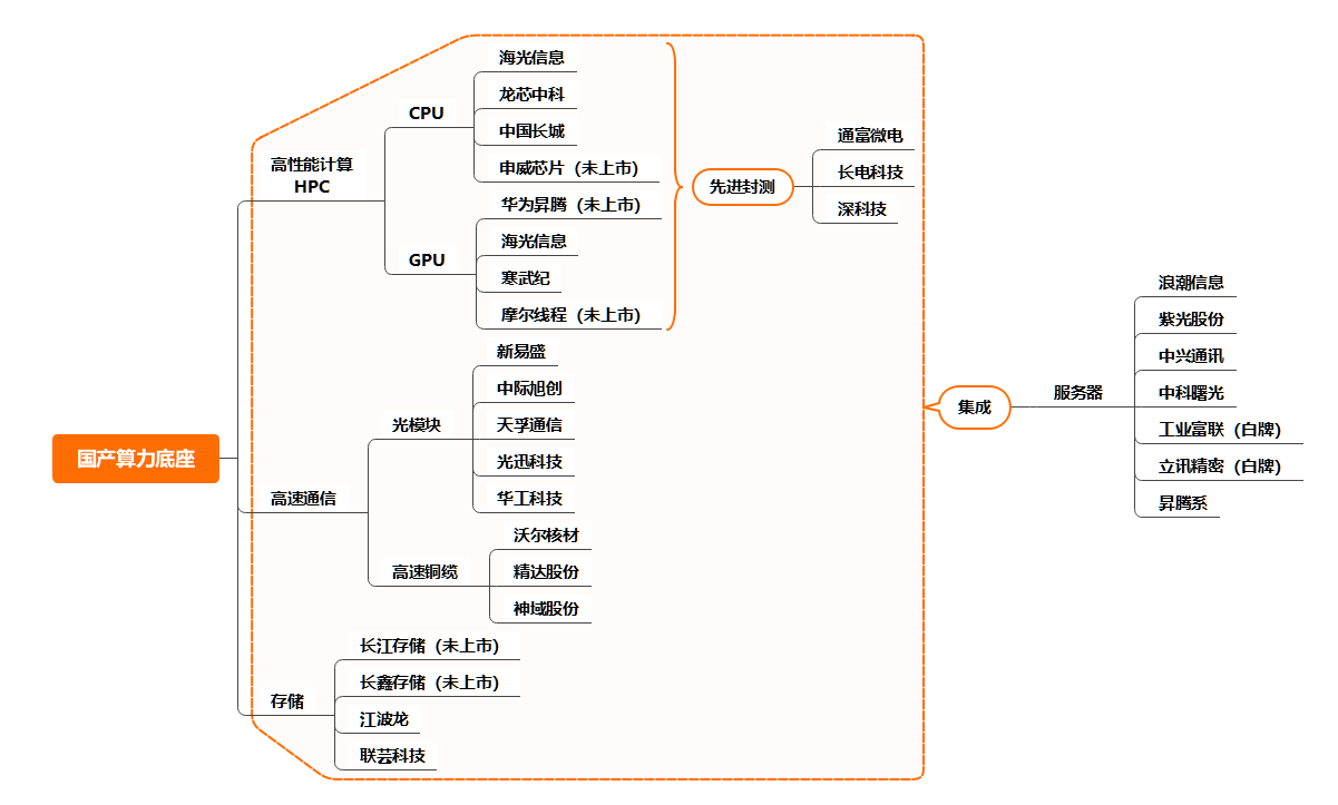 2)算力芯片:芯片是智能核心,目前寒武纪、华为昇腾和沐曦等国产芯片与英伟达H200仍存在较大差距,美国禁令下芯片卡脖子风险高,国产芯片亟待突破。