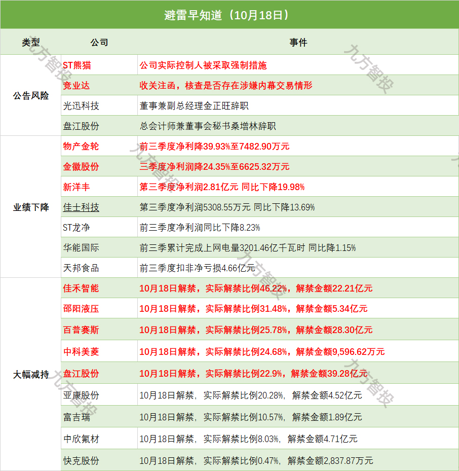 3)盘江股份:10月18日解禁,实际解禁比例22.9%,解禁金额39.28亿元