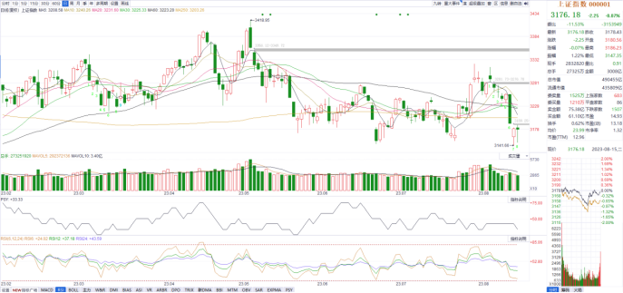今天,大盘全天探底回升,但三大指数仍收跌,沪指相对偏强。板块上,券商等金融股午后反弹带动指数回升,华林证券、首创证券涨停,中国银行涨超2%。医药股再度活跃,SPD方向领涨,华人健康、开开实业涨停;中药股震荡走强,华森制药、大理药业涨停。供销社概念股开盘大涨,天禾股份、天鹅股份涨停。人民币贬值相关板块盘中异动,雅艺科技、源飞宠物、麒盛科技涨停。下跌方面,半导体板块陷入调整,明微电子跌超10%,韦尔股份一度跌停。总体上两市个股跌多涨少,超3400股下跌,亏钱效应依旧较大。