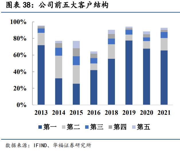 客户结构逐渐多元化,国内下游客户覆盖率达70%,2018-2022年进入多个供应链,覆盖的客户占据国内70%以上的市场份额。从客户结构来看,18年开始销售终端材料以后,前五大客户占比一直在90%左右,但第一大客户京东方的占比在不断下降,新客户不断开发为公司带来客户结构的优化,客户集中风险持续下降。