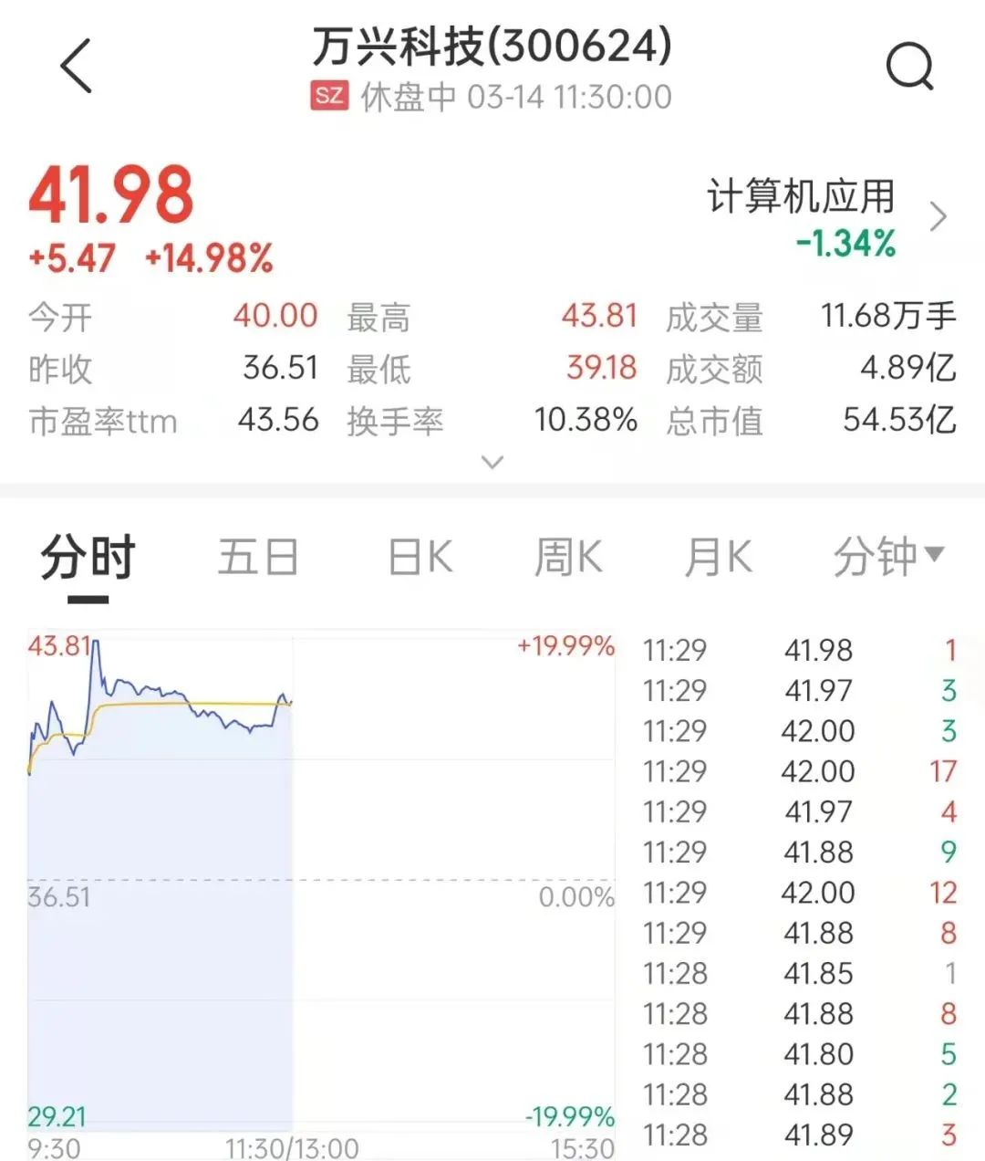 万兴科技旗下的Pixso同样对标Figma。受此突发事件影响,3月14日早盘,万兴科技股价大涨,一度以19.99%涨幅涨停。中证金牛座数据显示,截至午间收盘,万兴科技股价为41.98元,涨14.98%。