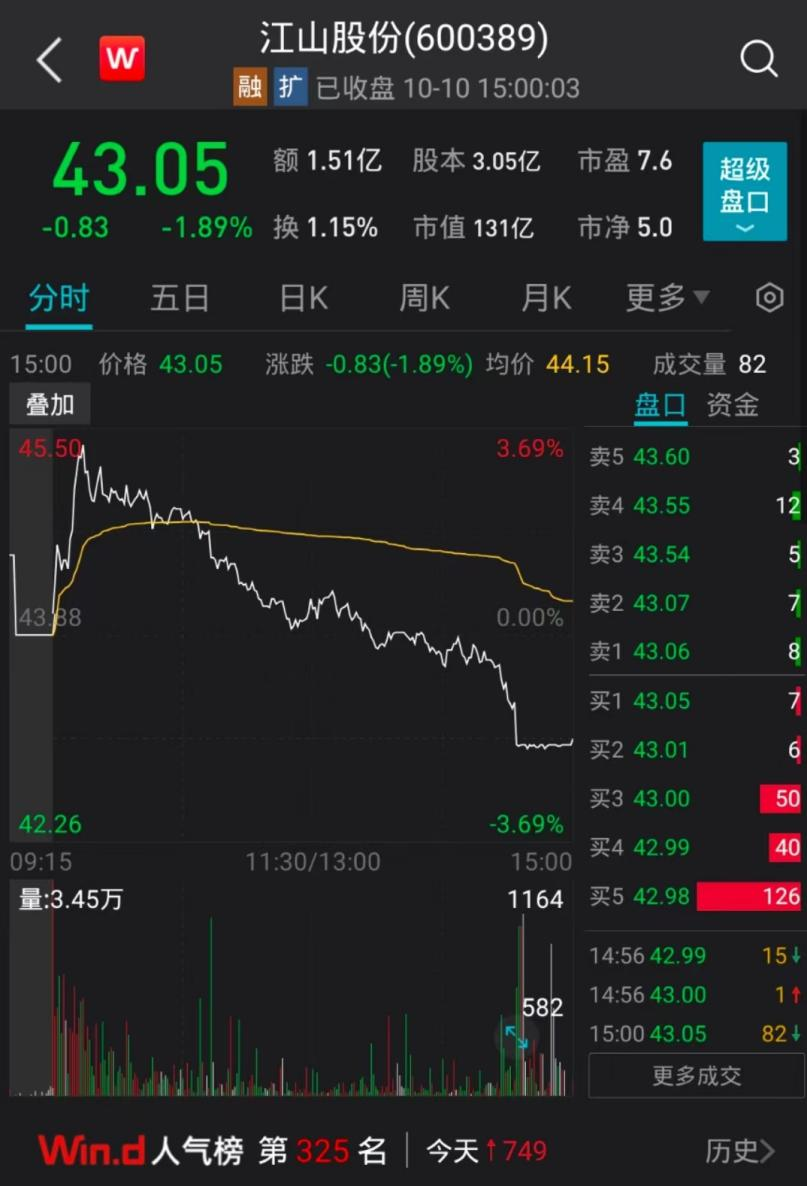 截至10月10日收盘,江山股份股价报43.05元/股,市值131亿元。