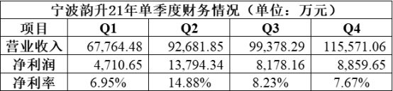 另外,分季度看,2021年宁波韵升单季度的净利率波动相对较大,二季度高达15%左右,而Q3、Q4有所回落。对此,上述接近公司人士对财联社记者解释称,公司产品没有淡旺季,但公司下游覆盖较广,客户可能有各自的淡旺季,但对于公司来说可以互相冲销,生产计划可以相应地做一些调整,“去年第二季度净利率高的原因,主要是有部分利润来自于之前价格相对低位的原材料。”