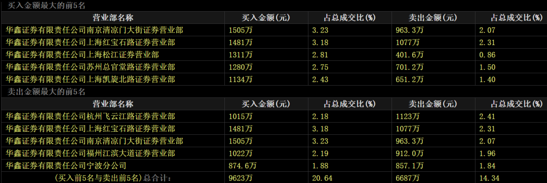如华鑫证券上海松江营业部指向知名游资“炒股养家”;而华鑫证券杭州飞云江路证券营业部也是近年来崛起的江浙资金席位,在市场上颇为活跃。