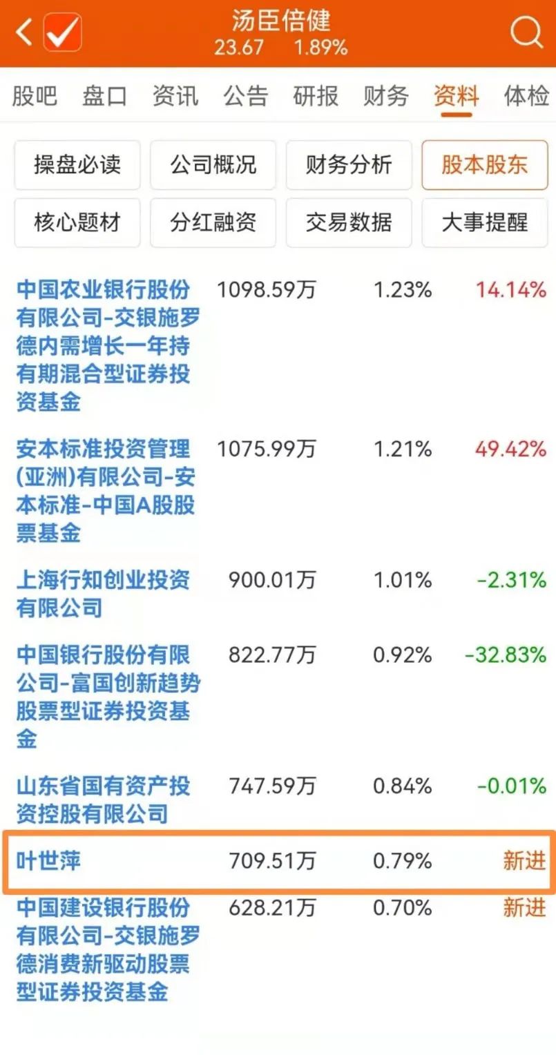 结合汤臣倍健的定期报告可以看出,叶世萍是在今年上半年大举买入的。如果是在二季度买入的话,其买入成本或高达30元,耗资超过2亿元。加上此前孙惠刚定增参与的12亿元,两人合计耗资高达14亿元。目前,这些持仓全部处于浮亏状态。