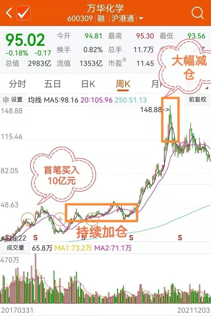 第三次财富跃迁,就是2018年上半年重仓出击的万华化学,一举让他步入百亿身家。