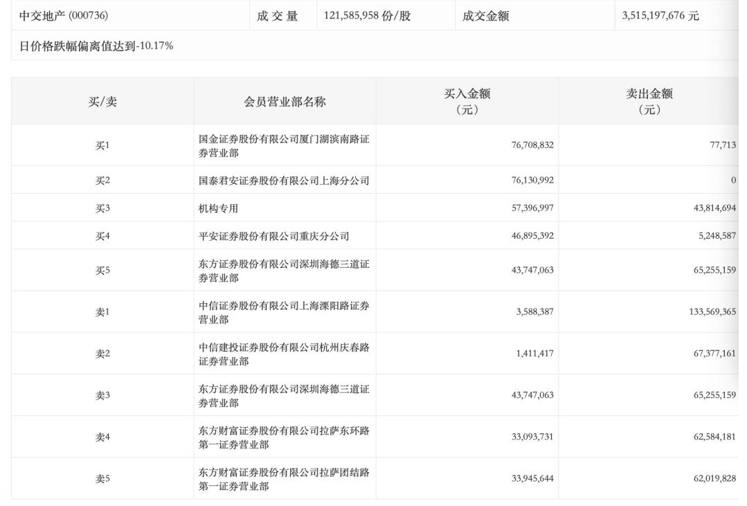 中交地产跌停!游资、机构之间博弈激烈