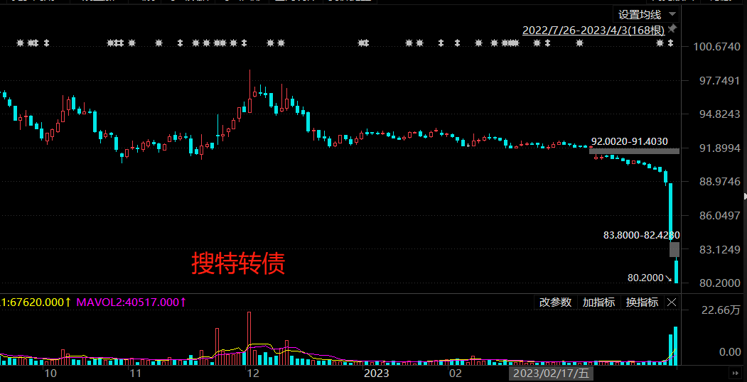 受到蓝盾转债大跌影响,正股业绩不佳的搜特转债等亦领跌市场。