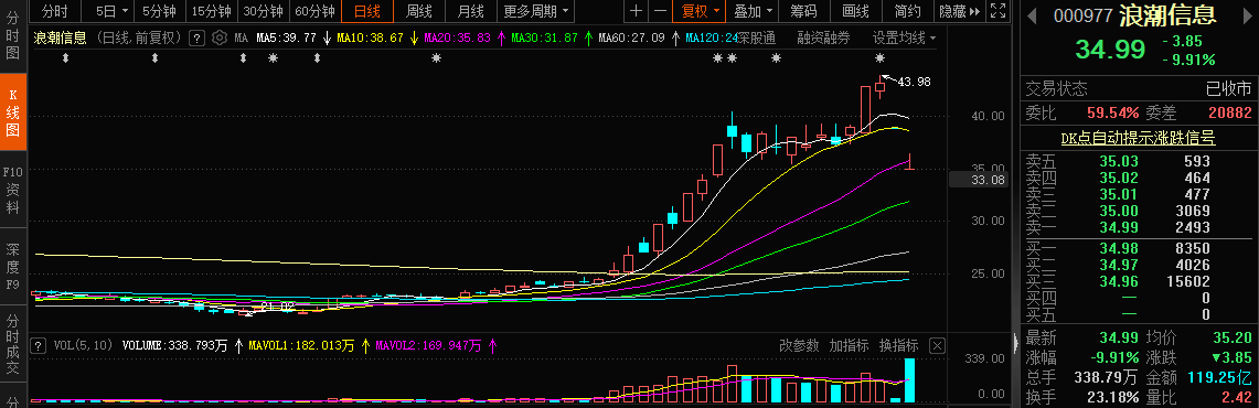 3月6日讯,突遭美国“下黑手”,近期的算力牛股浪潮信息涨势急刹车,在经历了上周五的一字跌停后,该股今日延续大跌走势且成交量显著放大,逾百亿资金博弈的背后,游资抄底活跃而外资则离场坚决。
