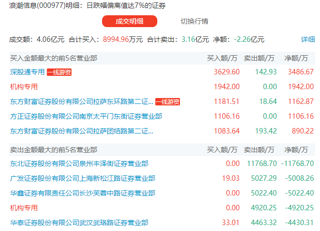 当日的龙虎榜数据显示,外资及东方财富证券拉萨的两个营业部净买入居前,东北证券泉州丰泽街营业部大举净卖出近1.2亿元。